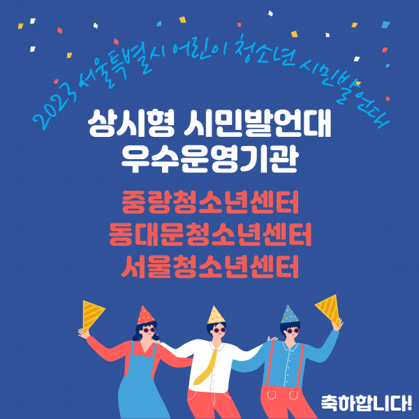 2023년 서울특별시 어린이 청소년 시민발언대 우수운영기관 축하드립니다.