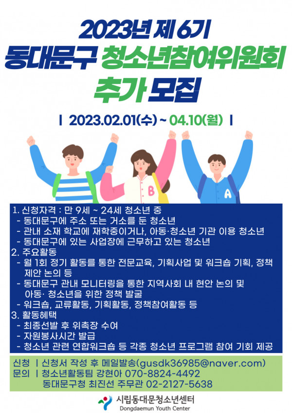 [모집] 2023년 제6기 동대문구 청소년참여위원회 모집 안내