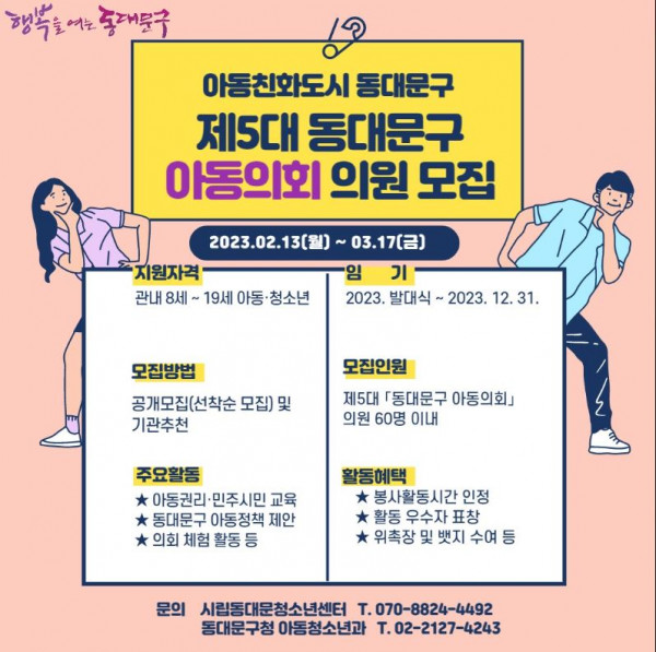 [모집] 2023년 제5대 동대문구 아동의회 모집 안내