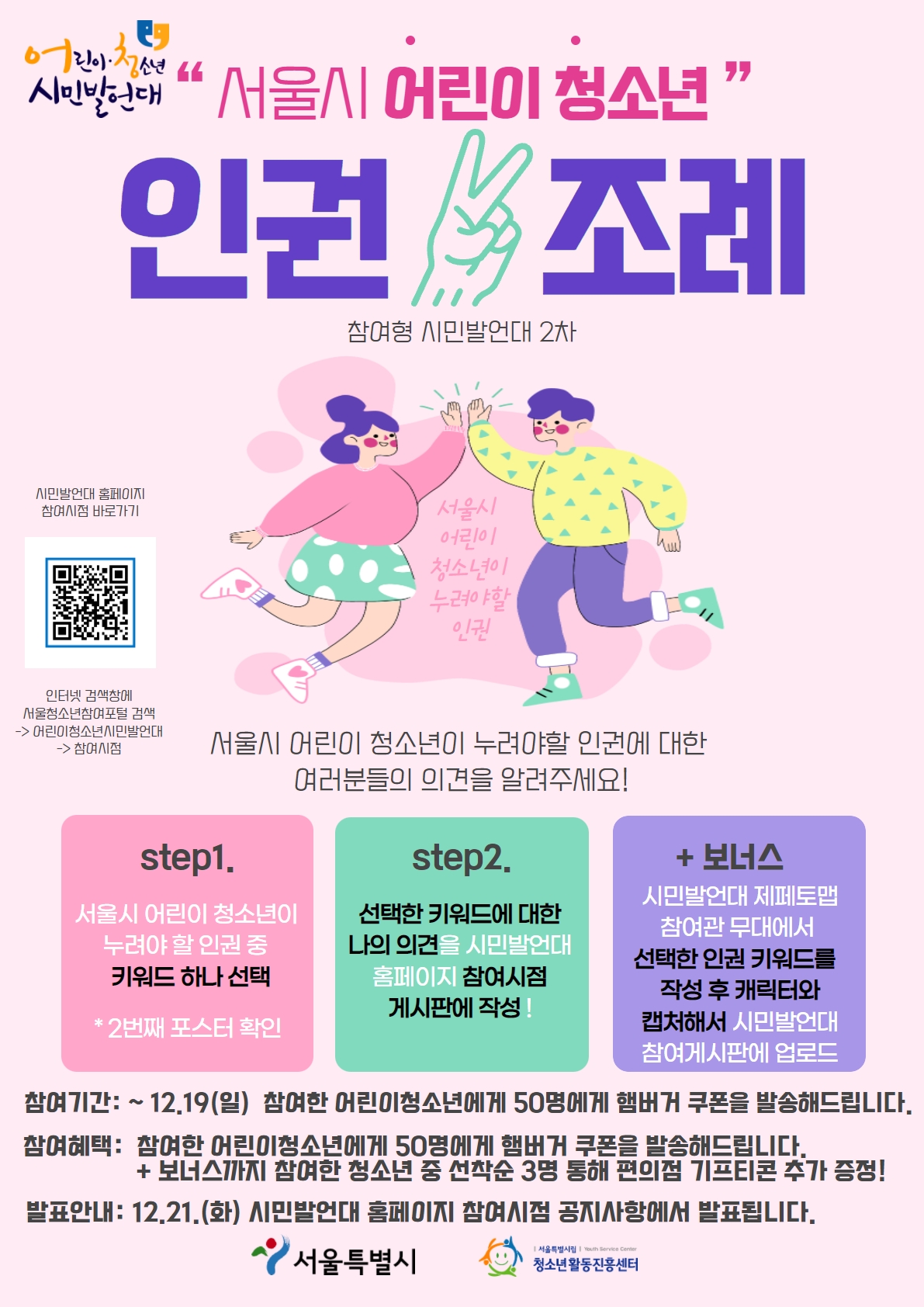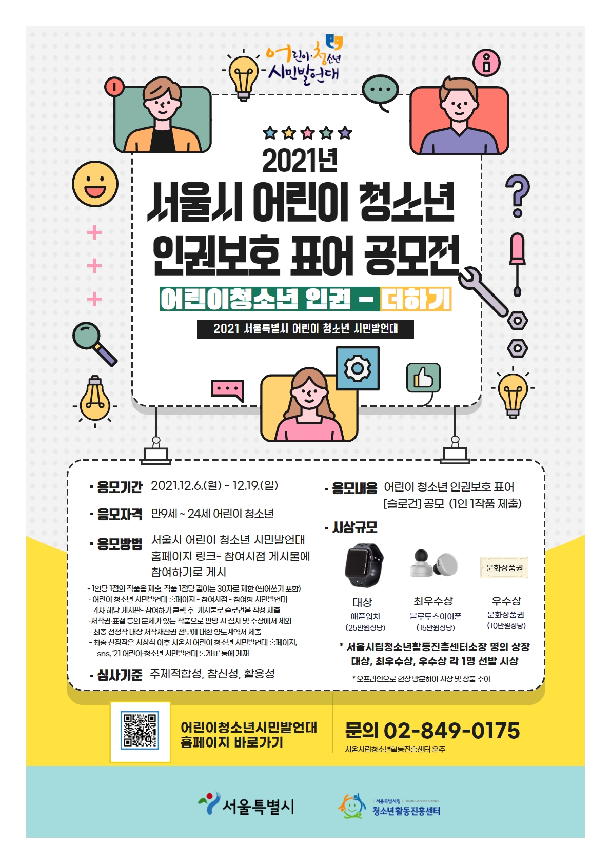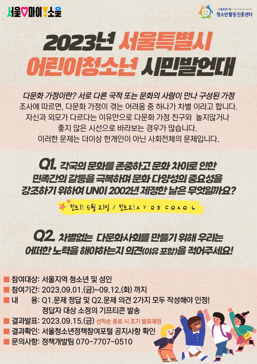 (결과발표)서울특별시 어린이청소년 인권보호 표어[슬로건] 공모전「어린이·청소년 인권 더하기」