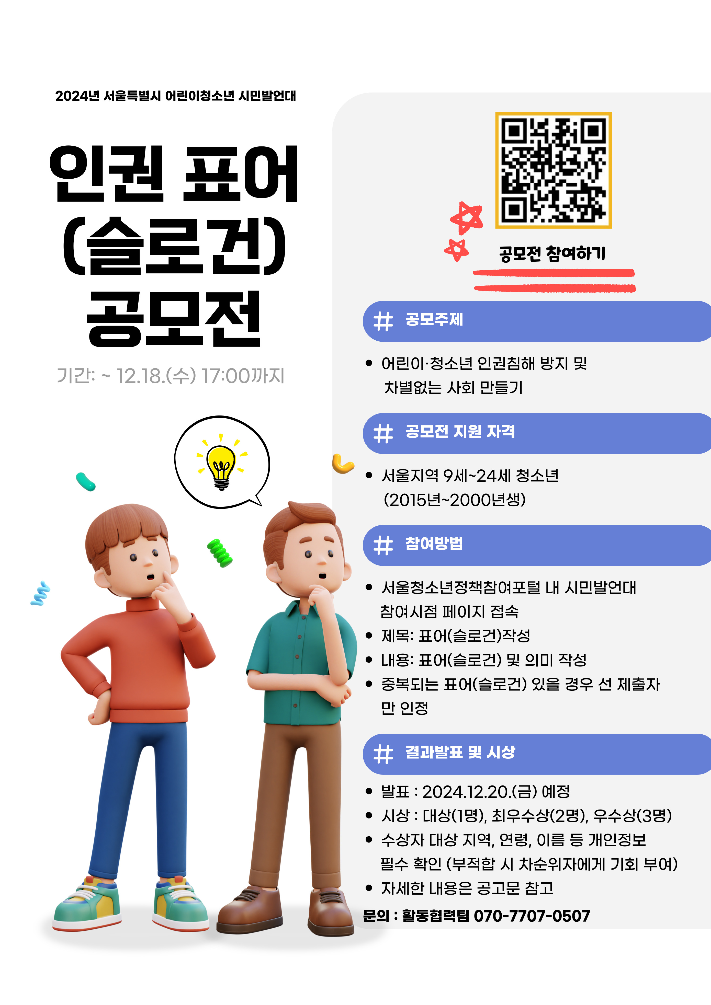 2024년 서울특별시 어린이청소년 시민발언대 '인권 표어(슬로건) 공모전'