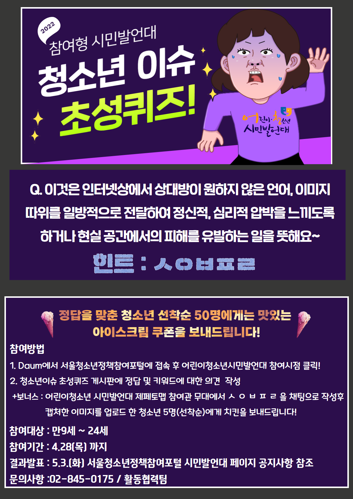 2022 서울특별시 어린이청소년 시민발언대 참여형 인권 공모전 참가 안내